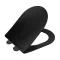 Ултраплоска тоалетна чиния в модерна D-образна форма, в мистериозно черно. Изработен от устойчив на надраскване и нечупливост дуропласт с антибактериална повърхност. Автоматичен механизъм за спускане Easy-Close за тихо затваряне с леко докосване. Размери 36 x 46 см.