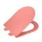 Ултраплоска тоалетна чиния в модерна D-образна форма, в ярък корал. Изработен от устойчив на надраскване и нечупливост дуропласт с антибактериална повърхност. Автоматичен механизъм за спускане Easy-Close за тихо затваряне с леко докосване. Размери: 46 см (Д: ) × 36 см (В: )