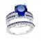Двоен пръстен от 10-каратно бяло злато. 10K gold filled. 2,33 карата син камък от сапфир. Камъкът е с размери приблизително 9 мм х 9 мм. Допълнено с 24 брилянтно изрязани сини камъка. Вторият пръстен съдържа 17 брилянтно изсечени сини скъпоценни камъка. Gold Filled - технология. Сплав с 10 каратово злато. Цвят - сребрист/син. Размер - 19 мм/вътрешен диаметър на пръстена/ Инструкция за поддръжка – Важно - Бижутата са с декоративна цел. За разлика от изработените от масивно злато или други благородни метали, запазването им в добро състояние по дълго време изисква грижа. Не упражнявайте труд с бижута по вас – лек, тежък, домакинска работа и т.н. Това може да доведе до деформации или нарушаване на целостта на изделието. Пазете бижутата с кристали и камъни от вода – при монтажа на някои от тях се използват лепила, които не издържат на продължително мокрене (най-вече с топла вода) и може да предизвика отлепване. Не носете бижутата едно до друго или едно върху друго, за да предотвратите надраскване и износване на метала. Пазете бижутата от прекомерни нагрявания или удари в твърди повърхности с тях. Избягвайте контакт с морска или минерална вода, химикали, домакински препарати, парфюм и лосиони. Козметичните продукти съдържат алкохол и киселини, които оказват пагубно влияние на бижуто. Слагайте бижутата няколко минути след поставяне на кремове и лосиони, както и след гримиране. Сваляйте бижутата преди лягане, миене, къпане. За пръстените и обеците с перли или изпъкнали елементи препоръчвамe, когато сваляте бижуто, да не го дърпате за изпъкналата част. В случай, че има заяждане на елементи, внимателно раздвижете елементите до тяхното отпускане. Независимо от това, продължителността на носене и начина на третиране на бижуто, може да доведе до поява на признаци на износване и промяна на цвета на метала.