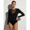 Луксозно дамско боди Evoni, изработено от висококачествена памучна материя с добавен еластан за комфорт и перфектно прилепване. Фин прозрачен акцент придава елегантен и модерен завършек. Подходящо както за ежедневна визия, така и за специални поводи.