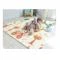 Двулицево сгъваемо килимче за игра от XPE материал Гъвкав и мек килим за игра, изработен от XPE материал, който е напълно безвреден за бебето. Подходящ за употреба от новородено Сгъваемо килимче, което се разпъва и прибира за няколко секунди. Двулицевият дизайн с различни цветове и картинки от всяка страна изненадва и носи на бебето повече усещане за свежест, за да предизвика любопитството му и да опознае света още по - бързо. Повърхността е 100% водоустойчива и лесно се почиства със суха или мокра кърпа. Никога не се притеснявайте за проблеми с лигички или петна при захранване. Двойният L текстуриран дизайн против приплъзване помага за намаляване на пързалянето при лазене и също не се пързаля на ламинат или плочки. Размер 1.50м х 1.80м, дебелина 1 см Килимчето може да се използва и на по - малко пространство. Може да се подгъне една или две плочки по широчината. Килимчето може да се подгъне само от вън навътре. Килимчето е с чанта за съхранение - подарък за вас.