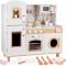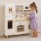 Детската дървена кухня играчка GINGER HOME във винтидж стил е мечтан комплект за всяко дете, което обича да готви, да играе и да пресъздава ситуации от ежедневието. Тази голяма кухня за игра предлага реалистични функции – електронни котлони със светлини и звуци, както и мивка с течаща вода, които превръщат играта в истинско преживяване. Стабилната конструкция от MDF и масивно дърво гарантира безопасност, дълготрайност и устойчивост при ежедневна употреба. Детската дървена кухня играчка е подходяща за момичета и момчета на възраст от 2 до 7 години и насърчава въображението, ролевите игри и самостоятелната игра.