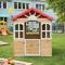 Детската дървена къщичка за игра на открито GINGER HOME създава собствено, уютно и безопасно пространство за игра в двора или градината. Тя е проектирана да насърчава въображението, ролевите игри и активното прекарване на време на открито, като предоставя на децата възможност да създават свои истории, игри и социални взаимодействия. Къщичката е изработена от натурално дърво и се отличава със стабилна и устойчива конструкция, подходяща за продължителна употреба на открито. Реалистичният дизайн с врата и прозорци превръща играта в истинско преживяване, като позволява на децата да влизат в различни роли – дом, магазин, кът за игра или творческо пространство. Цветните декоративни елементи в зелено, червено и бяло придават свеж и приятен детски облик, който се вписва хармонично във всеки двор или градина. Масивната конструкция осигурява стабилност и сигурност по време на игра, което я прави предпочитан избор за родители, търсещи качествена и безопасна играчка за открито. С компактните си, но функционални размери, детската градинска дървена къщичка предлага достатъчно пространство за комфортна игра на едно или няколко деца и е подходяща за различни по големина външни пространства.