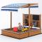 Детският дървен пясъчник GINGER HOME с регулируем покрив е многофункционална играчка за открито, създадена да осигури креативна, активна и безопасна игра на децата. Той комбинира класическа зона за игра с пясък с разнообразни интерактивни елементи, които стимулират въображението, двигателната активност и социалното взаимодействие. Моделът разполага с пясъчна мелница, писта за колички, черна дъска за рисуване и кофа с кранче за игра с вода, което позволява множество ролеви и конструктивни игри. Тези функции подпомагат развитието на фината моторика, координацията и творческото мислене. Регулируемият покрив (сенник) осигурява надеждна защита от слънцето по време на игра и може лесно да се настройва според нуждите и позицията на слънцето. Пясъчникът е изработен от качествена дървесина (ела) и стабилни конструктивни елементи, което го прави подходящ за използване в двор, градина или външни зони за игра. С тегло от 18,5 кг, конструкцията е масивна и устойчива при активна употреба. С размери 103 x 114 x 110 см, пясъчникът предоставя достатъчно пространство за едновременна игра на няколко деца и е отличен избор за дълги часове забавление на открито.