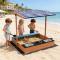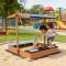 Детският Дървен Пясъчник 3в1 с Кухня, Пейка и Сенник с UV Защита GINGER HOME е многофункционална играчка за открито, създадена да осигури дълги часове забавление, творчество и безопасна игра на децата. Комбинирайки пясъчник, детска кухня и зона за сядане, този комплект превръща двора или градината в любимо място за игра през топлите месеци. Пясъчникът разполага с вградена детска кухня с включени аксесоари, която стимулира въображението, ролевите игри и социалното взаимодействие между децата. Удобната вградена пейка осигурява комфортно място за сядане по време на игра, а сенникът с UV защита предпазва от пряка слънчева светлина и може да се регулира според позицията на слънцето. Комплектът включва и текстилна подложка за основата, която се поставя под пясъчника и служи като бариера между пясъка и земята. Тя спомага за по-добра хигиена, предотвратява смесването на пясъка с почва и улеснява поддръжката на зоната за игра. Изработен от качествена дървесина (ела) и стабилни конструктивни елементи, детският пясъчник GINGER HOME е предназначен за външна употреба в двор, градина или открит кът за игра. С общо тегло от 14,3 кг, конструкцията е стабилна и устойчива при активна детска игра. С размери 110 x 114 x 110 см, пясъчникът предлага достатъчно пространство за едновременна игра на няколко деца и подпомага развитието на креативност, социални умения и фина моторика.