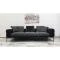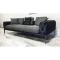 Тапициран е с висококачествена дамаска, мека на допир и устойчива на износване. Черната основа с лек сатенен ефект в съчетание със сивите декоративни възглавници придават изтънчено контрастно излъчване. Капитонираната облегалка и фините детайли подчертават луксозния му характер.