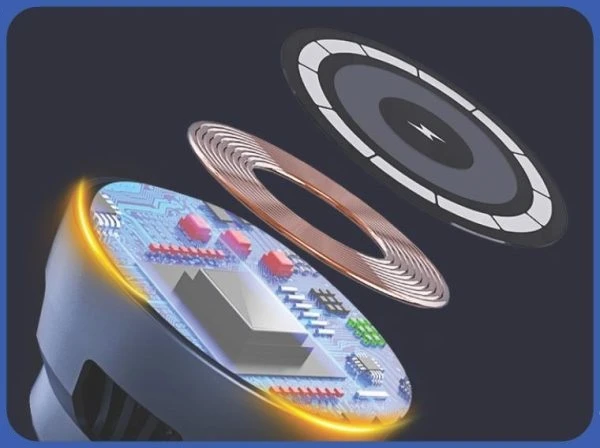 Безшумен вентилатор и множество отвори осигуряват оптимално разсейване на топлината по време на безжично зареждане