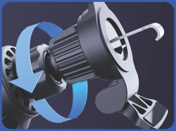 Усъвършенстваната щипка за монтаж осигурява сигурно и стабилно закрепване и е съвместима с хоризонтални и вертикални вентилационни отвори на автомобилното табло