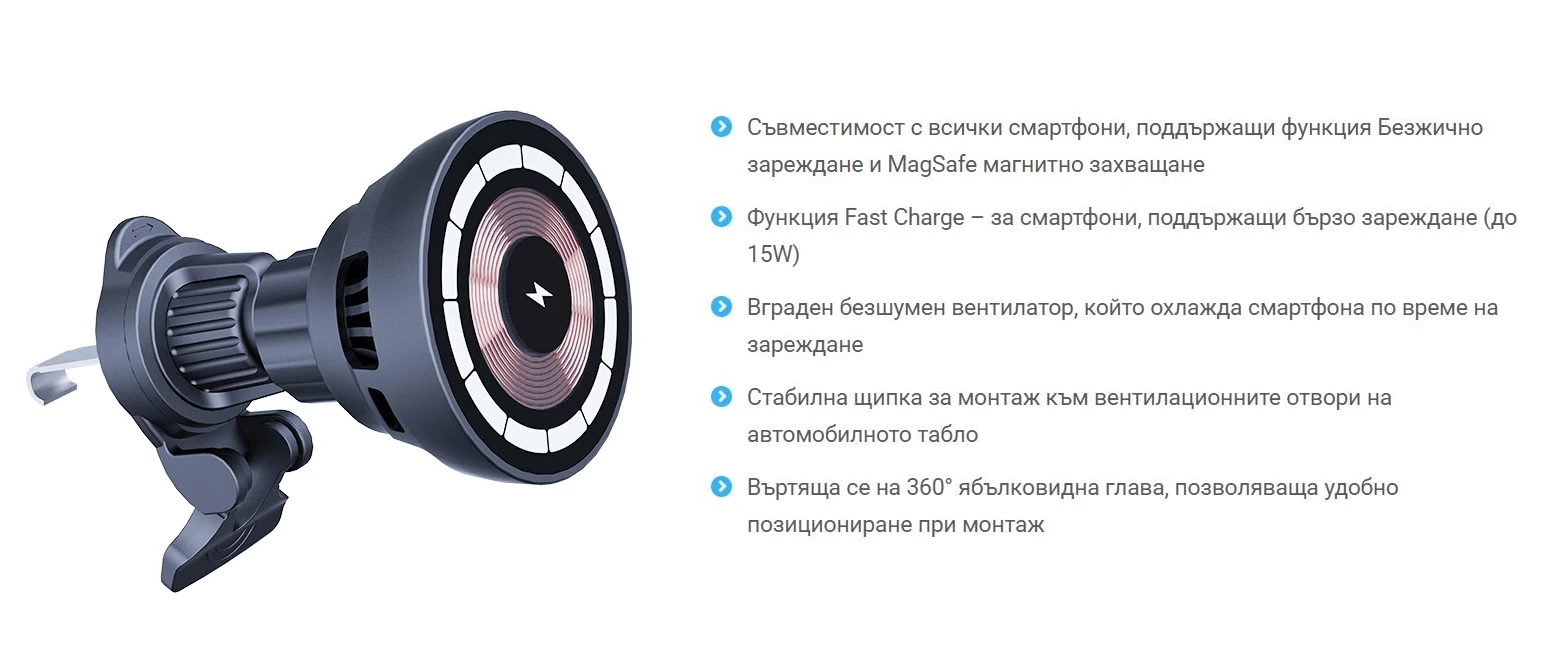 | Модел | Xmart Стойка Безжично Зарядно Кола Ch2027Ms 15W |