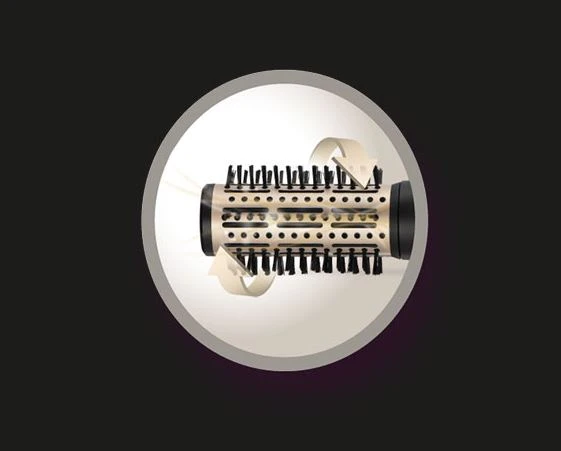 Оформянето на косата ви стана лесно. С натискането на бутона стайлърът автоматично ще насочи косата ви около 40-милиметровата четка с меки зъбци. И тъй като е проектиран да се върти във всяка посока, можете да постигнете симетричен стил от двете страни на главата си.