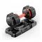 Регулируем дъмбел inSPORTline DuraBell® е с уникална система за регулиране на натоварването. Когато е регулиран точно, ще чуете „щракване“, което показва, че избраната дискова тежест е закрепена безопасно. Точната стойност в килограми е изобразена от вътрешната страна на дъмбела. Всяка страна на дъмбела може да побере до 4 тежести, което означава, че един дъмбел може да тежи от 6,5 до 24,5 кг. Дъмбелът ви помага да укрепите ръце, корем и гърди. Регулируемият дъмбел е подходящ за трениращи с ниво начално и професионално. Здравата ръкохватка е с неплъзгаща повърхност за отличен захват. Пакетът включва и пластмасова стойка, в която спокойно можете да съхранявате щангата и дисковите тежести.