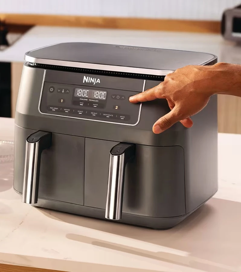 Комбинирайте функции за готвене, време и температури в две отделни чекмеджета за готвене, за да създадете безкрайни възможности за ястия. Бъдете креативни с шест различни функции за готвене: пържене с въздух, максимална хрупкавост, печене, печене, претопляне и дехидратиране.