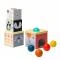 Комплектът от Taf Toys е чудесен за изграждане на логическо мислене и стимулиране на креативността. Той включва 3 кутии, 2 гладки топки и 3 скърцащи текстурирани топки. Детето ще бъде заето с нови предизвикателства докато развива фината моторика и уменията за решаване на проблеми. То може да подрежда всички кутии в кула, след което да я бутне, за да види какво ще се случи. Мъничето ще се научи да сортира и съпоставя формите по размер.