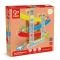 Сложете малката количка на върха на пистата и започнете състезанието. Количката ще се спусне до долу, преодолявайки всички препятствия. Играта развива двигателните умения на детето, логическото и творческо му мислене, координацията и сръчността. Изработена от дърво и е боядисан с бои на водна основа, които са безвредни. Подходящ за деца над 10 месеца.