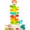 Подвижната дъска може да се сложи на крачета и да се получи удобна масичка, на която детето да играе и да се забавлява с часове. Писта за проследяване движението на топките Едно от любимите занимания на децата е да проследяват движението на предметите. Истинско забавление се получава когато детето започне да пуска едно след друго топките по пистата. Те влизат в дупка, завъртат се и всеки път излизат от различно място. Децата истински се забавляват и искат тази игра да продължи до безкрай!