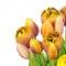 Букет лалета Belles Décorations от 13 броя. Всяко цвете е уникално по форма и цвят. Материал цветя и листа: пластмаса Обща височина: около 38 см. Цвят: Жълто/Оранжево.