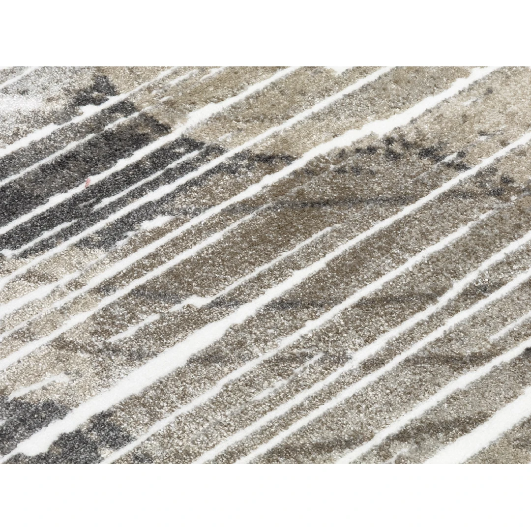 Лагос 278 е част от модерната колекция килими, вдъхновена от динамични абстрактни форми. Дизайнът включва диагонални линии, кръгови елементи и текстурни щрихи, които създават усещане за движение и артистичност. Цветовата гама от бяло, бежово, сиво и черно го прави универсален и лесен за съчетаване с различни интериорни стилове – от минимализъм до индустриален.