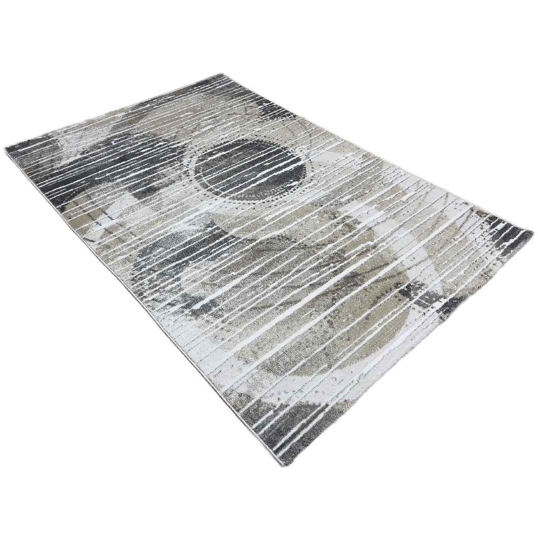 Подходящ за • Дневна • Спалня • Трапезария • Офис • Интериори в модерен, индустриален или скандинавски стил Килим Лагос 278 – Сив/Бежов е стилен и практичен избор за дома – произведен в Турция, той съчетава абстрактен артистичен дизайн, неутрални цветове и високо качество. С фризе нишки, стабилна основа и визуално въздействие, този килим ще внесе уют, стил и характер във всяко помещение.