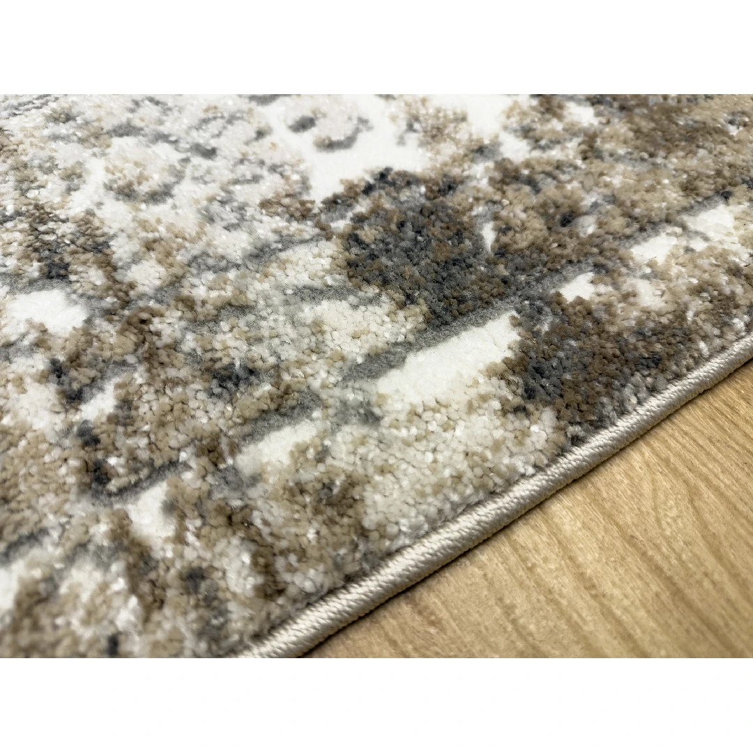 Бежов/Кафяв Лагос 365 е част от модерната колекция килими, която съчетава винтидж ефект с актуални интериорни тенденции. Дизайнът е в стил „дистрес“ – с избледнели орнаменти и абстрактни форми, които напомнят на старинни ориенталски мотиви, но в съвременно изпълнение. Цветовата гама от бежово, кафяво и екрю създава усещане за топлина и уют, като същевременно придава характер и артистичност на помещението.