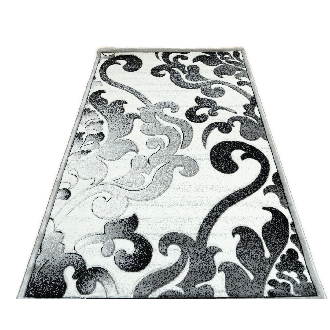 • Материал: 100% полипропилен • Дебелина на косъма: ~13 мм • Техника: машинно тъкан релефен килим с карвинг ефект • Цвят и дизайн: сиво-черна гама с модерни мотиви • Произход: Турция • Толеранс: до ±5% в размер и дебелина