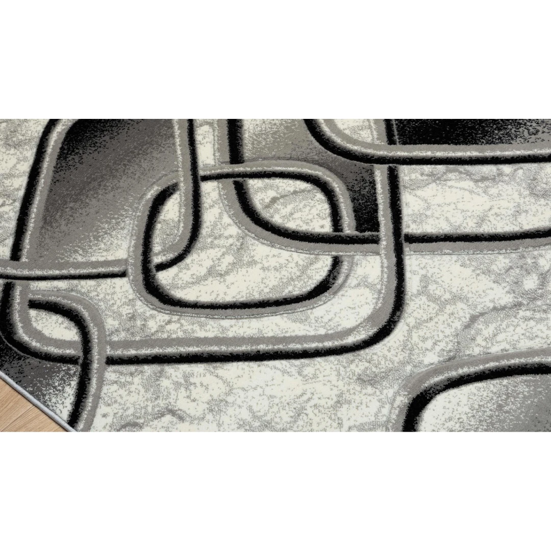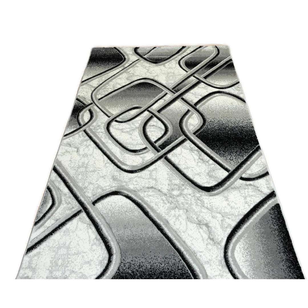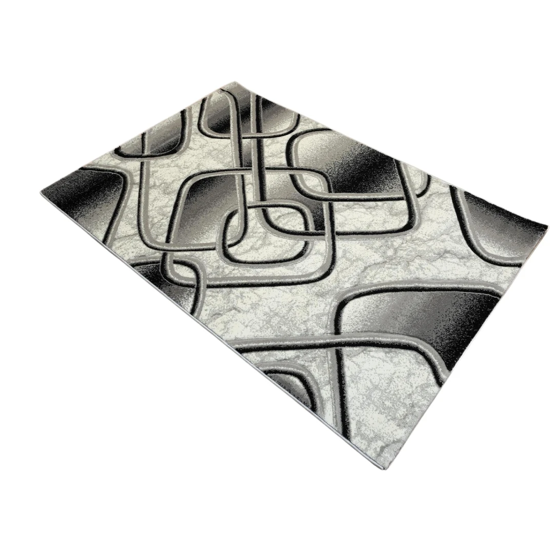 • Материал: 100% полипропилен • Дебелина на косъма: ~13 мм • Техника: машинно тъкан релефен килим с карвинг ефект • Цвят и дизайн: сиво-черна гама с модерни мотиви • Произход: Турция • Толеранс: до ±5% в размер и дебелина