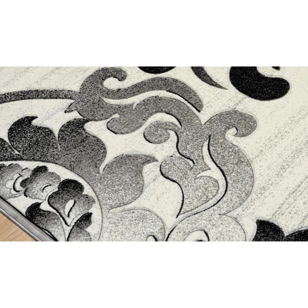 • Материал: 100% полипропилен • Дебелина на косъма: ~13 мм • Техника: машинно тъкан релефен килим с карвинг ефект • Цвят и дизайн: сиво-черна гама с модерни мотиви • Произход: Турция • Толеранс: до ±5% в размер и дебелина • Антистатичен • Лесен за почистване • Устойчив на слънчева светлина (не избледнява) • Мек и комфортен при допир • Запазва формата си дълго време