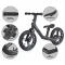 Детски балансиращ велосипед произведен от смес на полиамид/найлон, осигуряваща лекота на материала и в същото време здравина и еластичност. Помпащи 12“ гуми с PP джанти; кормило регулиращо се на височина от 54,5-57,5 с TPR ръковхватки; седалка, която може да се регулира на височина от 34,5 - 40,5см. Поставки за крачетата от двете страни на рамката. Тегло на велосипеда 3,8кг.Подходящ за деца от 3 до 8 години с височина над 80см и тегло до 35кг