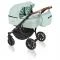 Алуминиева рама; кошове за новородено (зимен кош) – 2бр; летни кошoве – 2бр; чантa – 1бр; покривала за крачетата за кошовете за новородено; покривала за крачетата за летните кошове; дъждобран; мрежа против насекоми; голям двоен багажник; гуми не помпащи се, с лагерно окачване; регулиране твърдостта на амортисьорите; предни въртящи колела, с възможност за застопоряване; дръжка, обшита с еко-кожа; възможност за монтиране на всички кошове в двете посоки на движение; централна спирачка, която лесно се пуска и освобождава; лесно поставяне и сваляне на колелата; всички използвани материи са с висок стандарт; количката е произведена съгласно европейските норми за безопасност EN 1888:2012; лесно сгъване-разгъване на рамата на количката до размери 30х75х79см. Зимен кош за новородено: плътно зимно покривало; мрежа за проветрение в сенника; дебело меко матраче, изработено от висококачествен памук; матрачето и обиколника в коша за новородено лесно се свалят за изпиране; 4-точково захващане на коша за рамата – абсолютно неподвижен; Голям сенник; Ветробран; Размери на коша за новородено: 78см х 30см х 18 см – вътрешен размер; 65см – височина на сенника; тегло: 3,5 кг. Летен кош: плътно зимно покривало за крачетата; пълно легнало положение на седалката; 4-точково захващане на седалката за рамата – абсолютно неподвижна; мрежа за проветрение в сенника; възможност за удължаване на сенника при слънце или дъжд; възможност за откопчаване на предпазната бариера; меко комфортно матраче в летния кош; голяма практична чанта; поставката за крачетата е обшита с еко-кожа; петточкови комфортни предпазни колани. Размери на летния кош: 88см – дължина в пълно легнало положение; 32см – ширина на седалката; 55см – височина на сенника; тегло: 6кг.