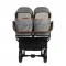 Aлуминиева рама; кошове за новородено (зимен кош) – 2бр; летни кошoве – 2бр; чантa – 1бр; покривала за крачетата за кошовете за новородено; покривала за крачетата за летните кошове; дъждобран; мрежа против насекоми; голям двоен багажник; гуми не помпащи се, с лагерно окачване; регулиране твърдостта на амортисьорите; предни въртящи колела, с възможност за застопоряване; дръжка, обшита с еко-кожа; възможност за монтиране на всички кошове в двете посоки на движение; централна спирачка, която лесно се пуска и освобождава; лесно поставяне и сваляне на колелата; всички използвани материи са с висок стандарт; количката е произведена съгласно европейските норми за безопасност EN 1888:2012; лесно сгъване-разгъване на рамата на количката до размери 30х75х79см. Зимен кош за новородено: плътно зимно покривало; мрежа за проветрение в сенника; дебело меко матраче, изработено от висококачествен памук; матрачето и обиколника в коша за новородено лесно се свалят за изпиране; 4-точково захващане на коша за рамата – абсолютно неподвижен; Голям сенник; Ветробран; Размери на коша за новородено: 78см х 30см х 18 см – вътрешен размер; 65см – височина на сенника; тегло: 3,5 кг. Летен кош: плътно зимно покривало за крачетата; пълно легнало положение на седалката; 4-точково захващане на седалката за рамата – абсолютно неподвижна; мрежа за проветрение в сенника; възможност за удължаване на сенника при слънце или дъжд; възможност за откопчаване на предпазната бариера; меко комфортно матраче в летния кош; голяма практична чанта; поставката за крачетата е обшита с еко-кожа; петточкови комфортни предпазни колани. Размери на летния кош: 88см – дължина в пълно легнало положение; 32см – ширина на седалката; 55см – височина на сенника; тегло: 6кг.
