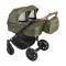 Алуминиева рама; кошове за новородено (зимен кош) – 2бр; летни кошoве – 2бр; чантa – 1бр; покривала за крачетата за кошовете за новородено; покривала за крачетата за летните кошове; дъждобран; мрежа против насекоми; голям двоен багажник; гуми не помпащи се, с лагерно окачване; регулиране твърдостта на амортисьорите; предни въртящи колела, с възможност за застопоряване; дръжка, обшита с еко-кожа; възможност за монтиране на всички кошове в двете посоки на движение; централна спирачка, която лесно се пуска и освобождава; лесно поставяне и сваляне на колелата; всички използвани материи са с висок стандарт; количката е произведена съгласно европейските норми за безопасност EN 1888:2012; лесно сгъване-разгъване на рамата на количката до размери 30х75х79см. Зимен кош за новородено: плътно зимно покривало; мрежа за проветрение в сенника; дебело меко матраче, изработено от висококачествен памук; матрачето и обиколника в коша за новородено лесно се свалят за изпиране; 4-точково захващане на коша за рамата – абсолютно неподвижен; Голям сенник; Ветробран; Размери на коша за новородено: 78см х 30см х 18 см – вътрешен размер; 65см – височина на сенника; тегло: 3,5 кг. Летен кош: плътно зимно покривало за крачетата; пълно легнало положение на седалката; 4-точково захващане на седалката за рамата – абсолютно неподвижна; мрежа за проветрение в сенника; възможност за удължаване на сенника при слънце или дъжд; възможност за откопчаване на предпазната бариера; меко комфортно матраче в летния кош; голяма практична чанта; поставката за крачетата е обшита с еко-кожа; петточкови комфортни предпазни колани. Размери на летния кош: 88см – дължина в пълно легнало положение; 32см – ширина на седалката; 55см – височина на сенника; тегло: 6кг.