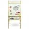 Магнитна двустранна дъска за рисуване. В комплекта са включени руло с хартия за рисуване, тебешир, гъба, маркер и магнитни букви.