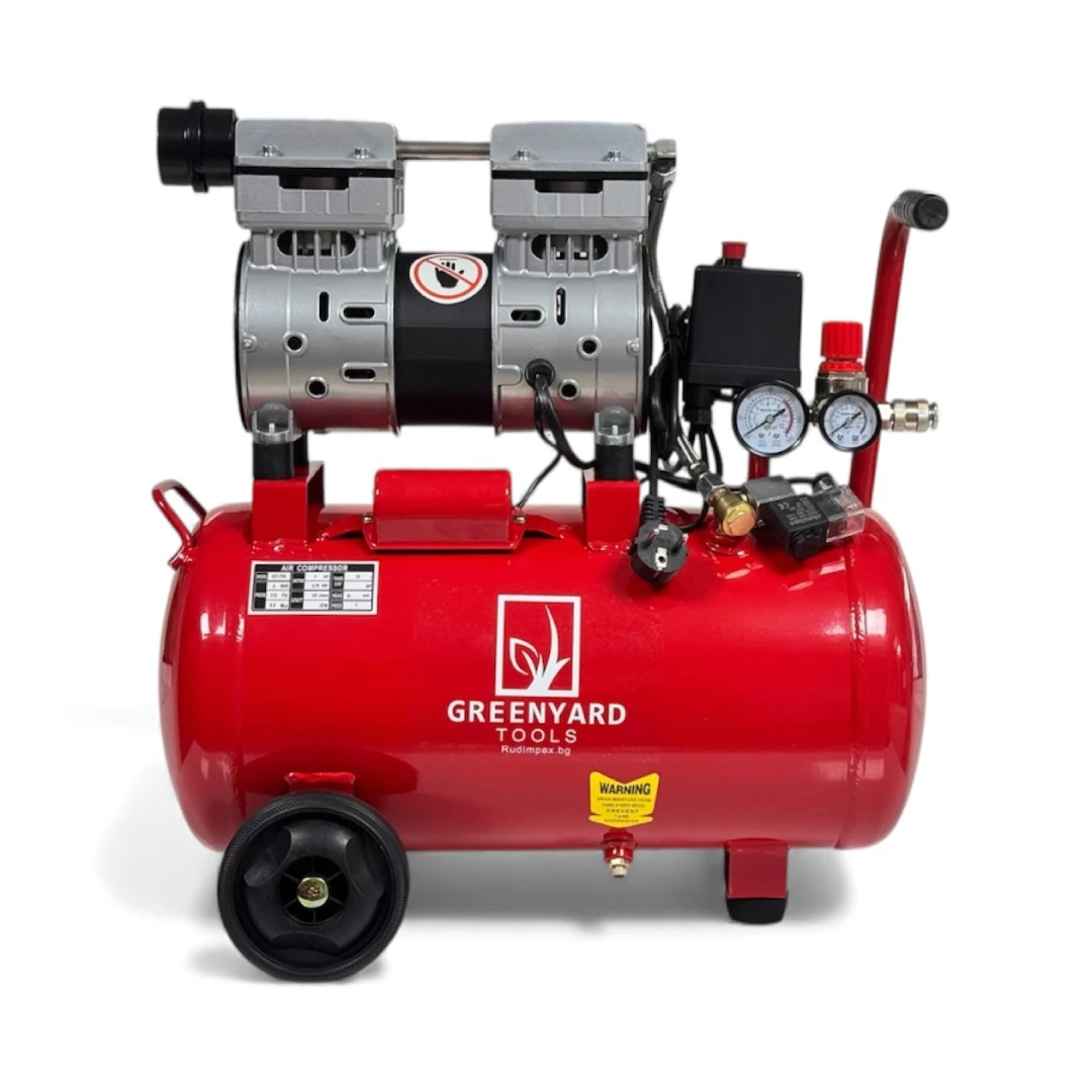 – Тип: Безмаслен бутален компресор – Мощност: 750 W / 1 HP – Резервоар: 24 литра – Работно налягане: до 8 bar / 115 psi – Дебит на въздуха: 110 л/мин – Обороти: 1400 об./мин – Захранване: 230 V – Тип мотор: Електрически – Функции: • 2 х Манометри • Регулируемо налягане чрез редуцир вентил • Две бързи връзки – за регулирано и директно налягане – Тип смазване: Без масло – Мобилност: Гумирани стабилни колела