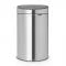 Подобрена система Soft Touch за леко, плавно и безшумно отваряне и затваряне. Оригинална - едновременно естетична и функционална - форма: плоският му гръб може да застане плътно до стената и така да спестите място. Модулът с капака и отварящия механизъм, които са направени от неръждаема стомана, се сваля бързо с цел лесна подмяна на торбите за смет. Вадещите се вътрешни пластмасови кофи (с вместимост 23 и 10 литра) са снабдени с вентилационни отвори, които предотвратяват създаването на вакуум при ваденето на пълните торбички със смет. Изработен от восококачествени и неподатливи на корозия материали. Удобна и дискретна дръжка за лесно местене и пренасяне на целия кош. Пластмасов пръстен на дъното на коша, предотвратяващ надраскването на пода и хлъзгането на коша. Кошът идва с подарък по една малка мострена ролка торби за смет Brabantia PerfectFit (размери G и K: 100% биоразградими) – за лесно поставяне и без стърчащи краища на торбата. Едноцветно интериорно решение: кошът и капакът му са в един цвят.