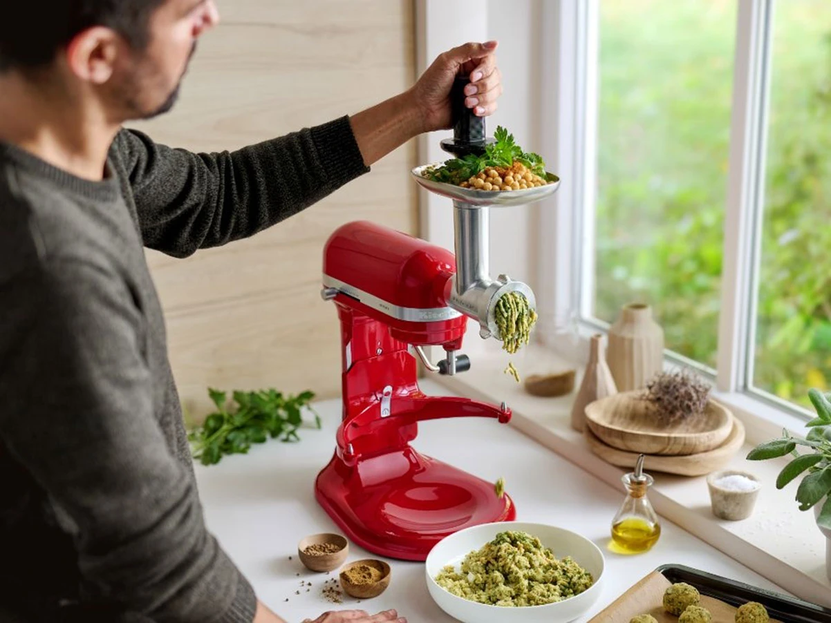 Проектиран да осигури превъзходна производителност и издръжливост, многофункционалният миксер Heavy Duty® предлага голяма творческа свобода чрез множеството налични аксесоари. Предната главина за закрепване на допълнителни аксесоари, патентована от KitchenAid, се използва от първия миксер, произведен през 1919 г. По този начин можете да прикрепите допълнителните аксесоари към предната главина, независимо от годината на производство или модела на стоящия миксер.