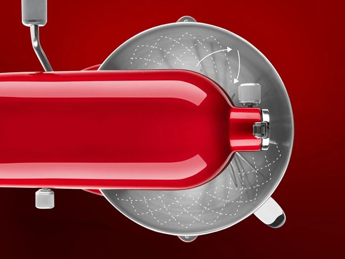 Благодарение на оригиналното планетарно движение е много лесно да се включат съставките със стационарния миксер Heavy Duty® . Така главата на стойката на миксера се върти в едната посока, докато аксесоарът се върти спираловидно в другата посока, като има 67 допирни точки с купата. Всичко за много по-хомогенна смес.