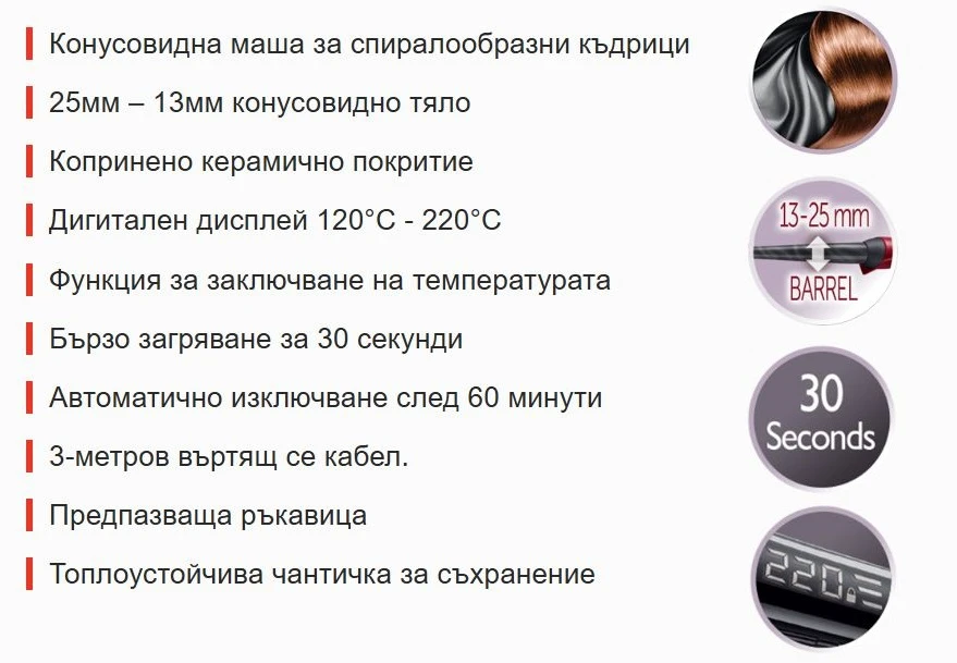 Копринено керамичното покритие е обогатено с копринени протеини, които помагат на дългите плочи безпроблемно да се плъзгат през косата.