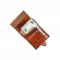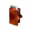 Класическият кафяв цвят придава елегантен и универсален вид, подходящ както за ежедневна употреба, така и за бизнес стил. Вградената алуминиева кутия за карти позволява удобно съхранение на няколко карти, като чрез специален механизъм те се изваждат бързо и лесно само с едно движение. Освен това портфейлът разполага с допълнителни отделения за банкноти и документи, което го прави практичен и функционален аксесоар.