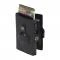 Класическият черен цвят придава модерен и стилен акцент, който го отличава и го прави подходящ както за ежедневна употреба, така и като стилен аксесоар. Портфейлът разполага с алуминиев картодържател с бърз механизъм, който позволява лесно изваждане на картите само с едно движение. Освен това има допълнително отделение за банкноти и документи, което осигурява добра организация на вашите вещи.
