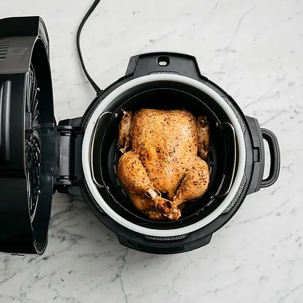 Вечерята е готова преди вас? Мултикукърът Ninja Foodi 7 в 1 може да запази ястието ви топло до 12 часа след приготвянето му. Перфектно оразмерен за до 4 души. Включва голям съд за готвене с обем 6 л и кошница Cook & Crisp с обем 3,7 л, която побира до 1,1 кг пържени картофи или цяло пиле с тегло 2 кг.