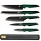 Цвят и Дизайн: Смарагдовият цвят на тези ножове не само придава уникален и модерен вид, но и внася чувство за изисканост във вашата кухня. Елегантният дизайн, допълнен от магнитната закачалка, прави този комплект не само практичен, но и впечатляващ акцент в интериора.