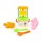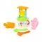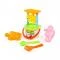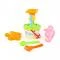 Плажен комплект от 7 части с мелница през която да се пуска пясъка, сито, лопатка, гребло и 2 формички.