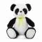 Плюшена панда с червена панделка, изработена от мек и приятен на допир материал.