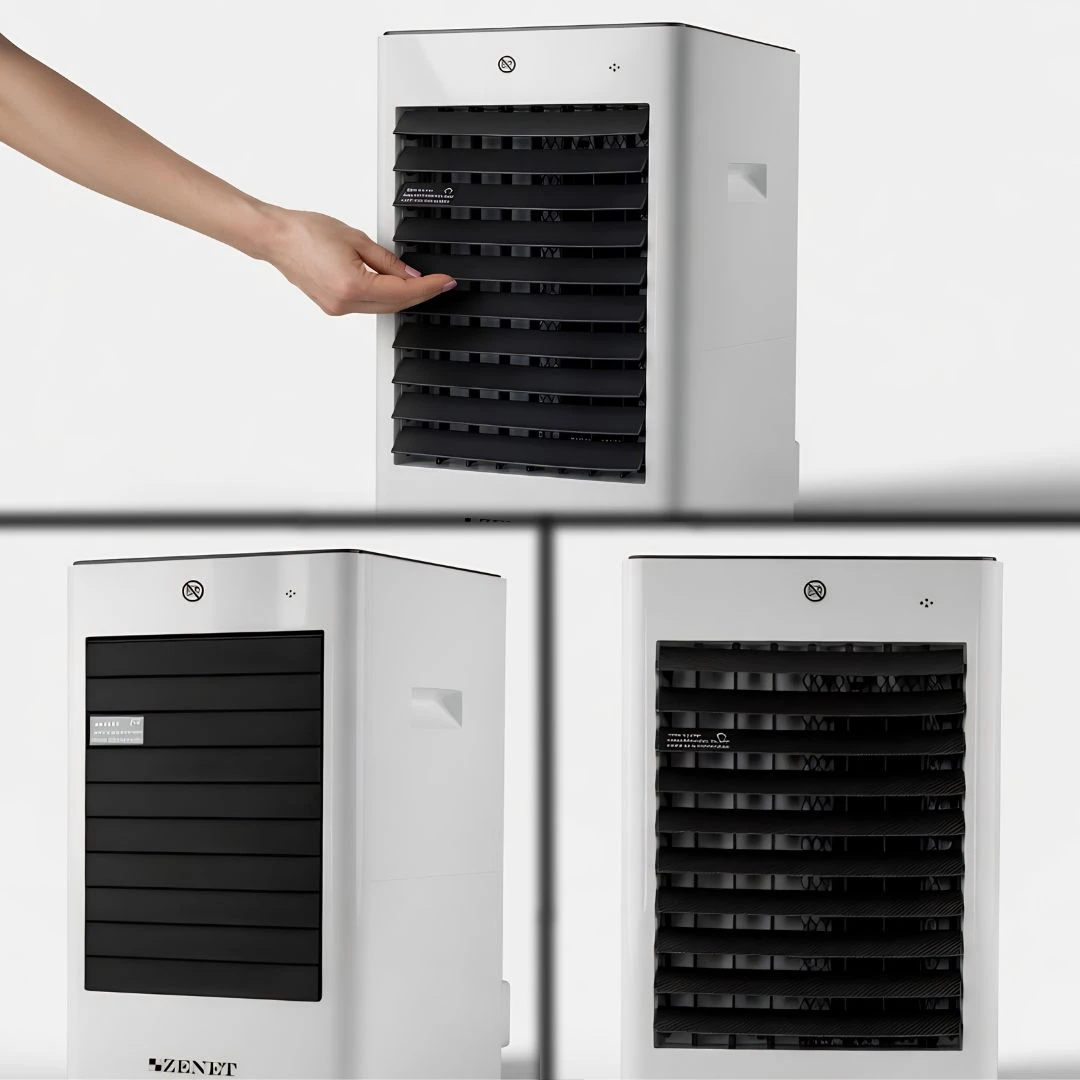 Преносим климатик Zenet ZET-481 Универсално решение за идеален микроклимат в помещения до 30 квадратни метра. Компактен, подвижен, елегантен, не заема място и пести електричество Комбинира функции за охлаждане, отопление, пречистване и овлажняване на въздуха, осигурявайки не само приятна температура, но и чист въздух. Идеален за дома, офиса, магазина - без да дупчите стени, не изисква професионален монтаж и почти никаква поддръжа! Охлаждане: Намалява температурата с 6-10 градуса, използвайки хладилни агенти /хладилни бутилчици/ Отопление: Мощността на нагревателния елемент е 2000W - осигурява топлина през студените сезони /работи на принципа на духалката/ Пречистване на въздуха: Ефективно премахва прах, неприятни миризми, алергени и микроорганизми /чрез водна филтрация/ Овлажняване: Осигурява оптимална влажност на въздуха, което има положителен ефект върху дишането.