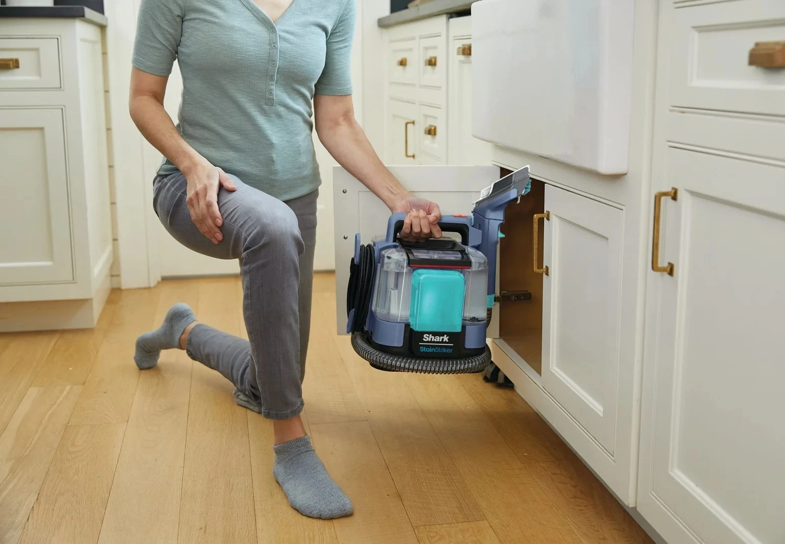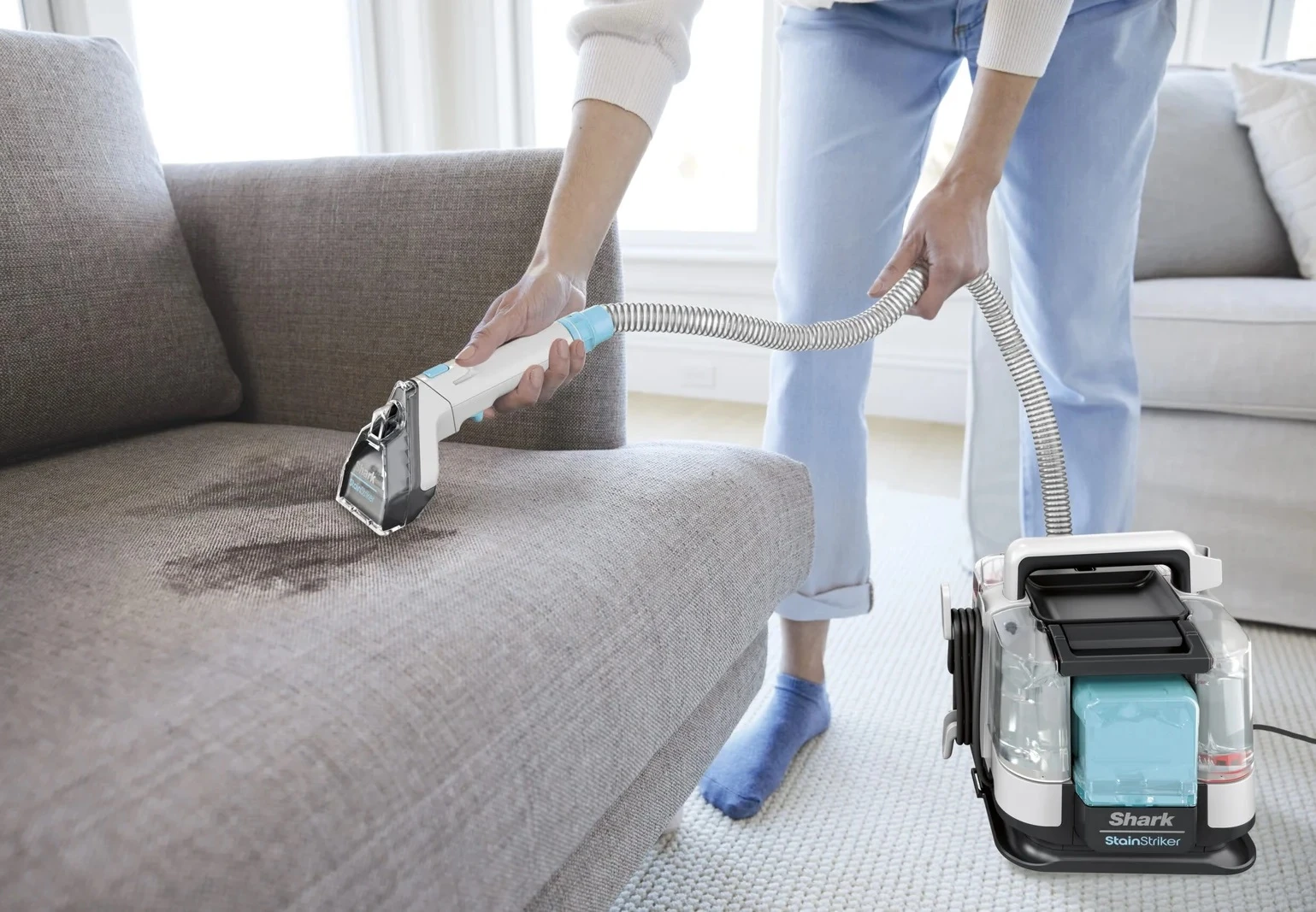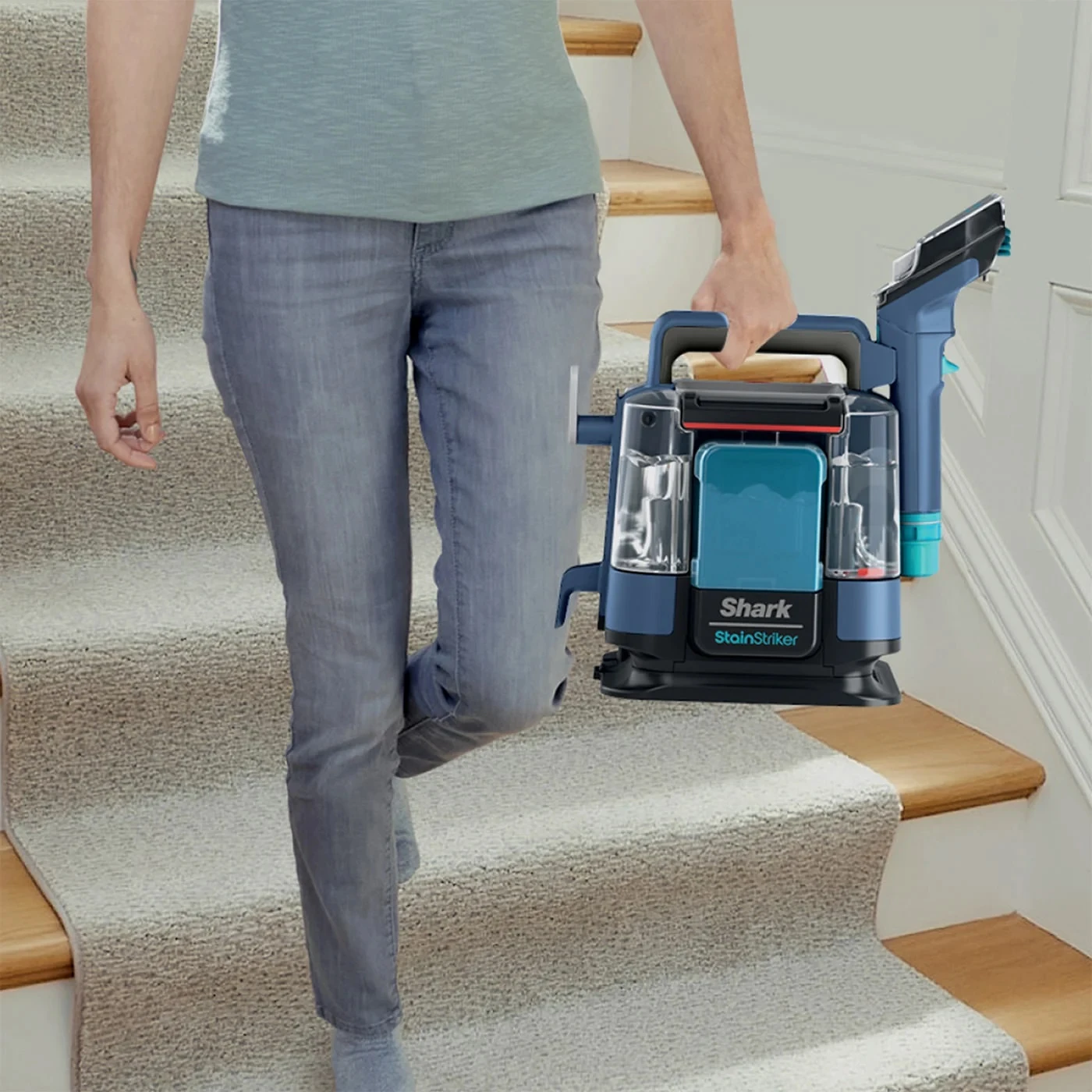 Представяме Shark StainStriker Pet – експерт в премахването на упорити петна. Перфектен избор за домове с животни. Специално проектиран за ефективно премахване на петна и неприятни миризми, свързани с домашни любимци, този компактен и мощен уред за локално почистване е идеален помощник в домакинството. Лесно се справя с петна върху килими и пътеки, стълби, мека мебел и тапицерия, интериор на автомобили, постелки и аксесоари за любимци и много други повърхности – навсякъде, където е нужно прецизно почистване.