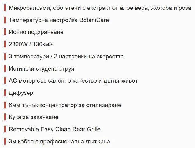 Ботанически обогатени микробалсами включващи екстракти от алое вера, жожоба и роза, се освобождават във въздушния поток, докато косата ви се нежно, но мощно бъде изсушавана, което ви дава красиви, гладки резултати.