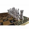 изработени от метал със сребърно покритие и бронз размер цар-10 см пешка-9 см дъска с размери 45х45 см