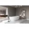 Керамичен регулатор; автоматичен превключвател вана/душ; Аератор M28x1; 1F ръчен душ; 150см шлаух с метална оплетка; Включен комплект за подово свързване 1/2”.; хром