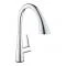 Тип защита IP 44; GROHE Long-Life хромирано покритие; GROHE SilkMove - 35 mmкерамичен картуш; водни пътища - без досег до олово и никел в смесителя; GROHE Magnetic Docking осигурява лесно и плавно прибиране на издърпващия се душ в начална позиция; издърпващ се душ с 3 вида струи; превключвател: ламинарна струя/ SpeedClean Jet струя/ GROHE Blade струя (намален разход на вода с до 70%); стоп функция - бутон за пауза, с който да спрете водната струя; Aвтоматично връщане към ламинарната струя; Регулатор на дебита; Подвижен тръбен чучур; Възможност за завъртане на 360°; Защита от обратен поток; Меки връзки