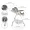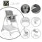 Столче за хранене, предназначено за деца на възраст над 6 месеца и с тегло по-малко от 15кг, които могат стабилно и самостоятелно да остават в седнало положение; Втора, цветна табла за хранене; 3 позиции за регулиране на таблата за хранене, според ръста на детето; 5-точков предпазен колан; 7 позиции на височина; 3 позиции за накланяне на облегалката; Регулируема поставка за крачета с 4 позиции на наклон и 3 позиции на височина; Кожена седалка, лесна за почистване.