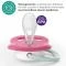 Симетричен и мек силиконов биберон подпомага естествените движения на устните мускули и здравословното развитие на устната кухина на бебето;